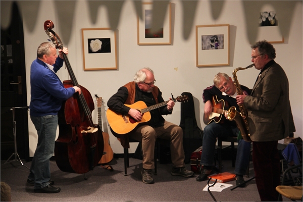 Beim Gospelchor (Ltg. Angelika Neuleben) der ev. Kirchengemeinde in Waltrop begleitet Florian Söll z.T. mit dem Kontrabass.
